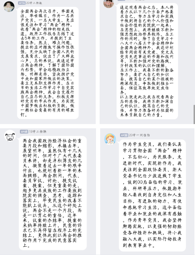 员工党员在收看两会直播全体党员展开了热烈的讨论,并积极发表了自己的心得体会。通过观看学习两会,员工党员们深深感受到了党和政府奋力谱写新篇章的决心,也领会了新时代赋予青年人的殷切期望,进一步感悟到了要在学习与实践中做到将自己的个人价值和社会价值统一起来,把思想和精神统一到两会精神上来,在正确的道路上实现自己的人生价值。