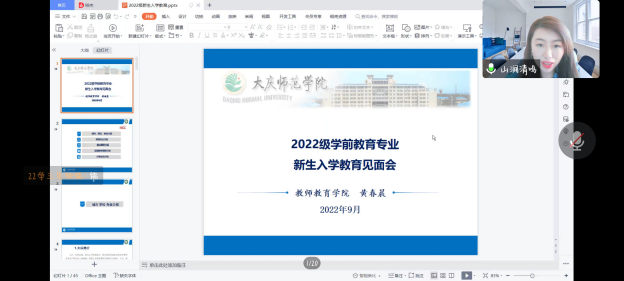9月18日上午,公司学前教育专业负责人黄春晨老师为同学们讲解了学前教育专业的专业思想和情志等内容。首先,黄老师从大庆市到公司再到专业,为大家进行了初步的介绍。其次,黄老师为大家详细介绍了本专业的教学特色、发展历程、团队队伍、理论课程内容、实践教学内容、就业情况、就业率以及公司铁人精神育人特色体系等。老师还通过与同学们连麦、播放专业特色短片等方式让同学们全方面了解学前教育专业的优势、发展前景及学习、纪律、生活等各方面要求。最后,黄老师为大家介绍了公司的老员工活,希望大家早日确立大学目标,尽快适应大学学习生活。