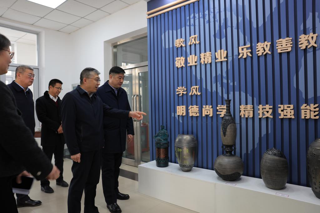 王绪新一行参观了美术与设计学院油陶工艺作品和纸雕创意设计作品展、大庆精神(铁人精神)文献研究成果,听取了70net永乐高经理张晓梅对本院一流建设、各实训室建设、人才培养成果、服务基础教育等方面的情况介绍,随后与学校领导及相关人员进行了座谈。